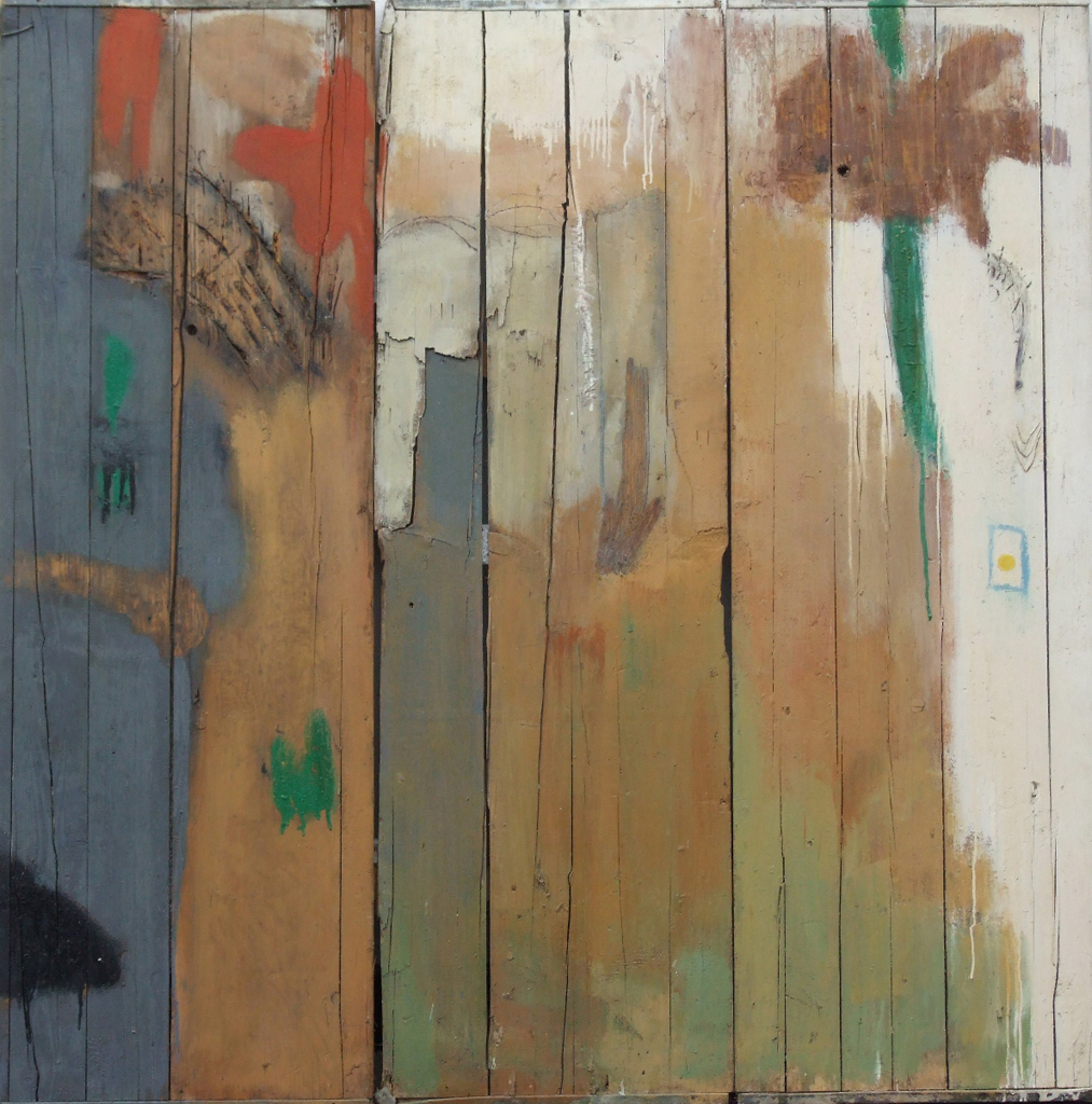 Hans Maas stammt vom Niederrhein, Jahrgang 1957. Er lebt seit vielen Jahren in Köln, dort hat er studiert, vor allem im Kölner und Bonner Raum stellt er aus. Als Material nimmt er nicht unbedingt die typische Leinwand, sondern auch abgelegte Bretter, gebrauchtes, verwittertes Holz. Reste und Fundstücke. Diese Kunst hat die Vergänglichkeit in sich aufgenommen.